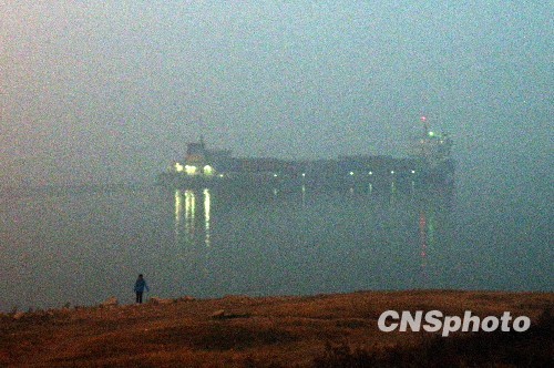 图:大雾持续4天锁长江 航运受影响(2)