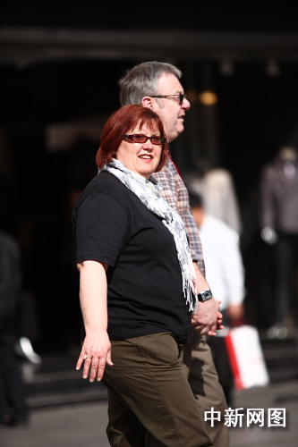 “洋超哥”身着短裤、人字拖逛街。张浪 摄