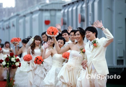 5月16日,沈阳一公司举办了主题为“见证历史,创造未来”的大型集体婚礼。30对来自一线的青年技工在父母和同事的见证下喜结良缘。