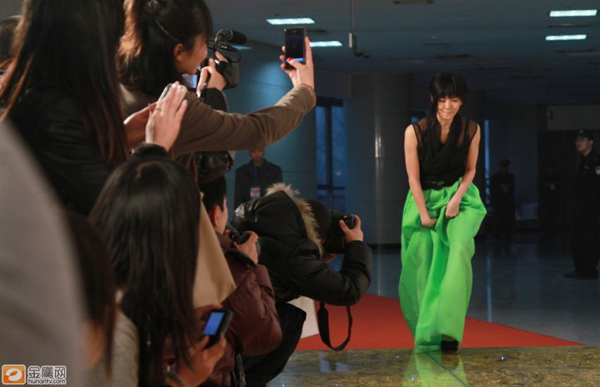 近日某音乐典礼红毯活动,孙燕姿绿裙拖地被踩到险摔倒。