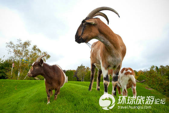 山羊在房顶悠闲的吃着青草,散着步。