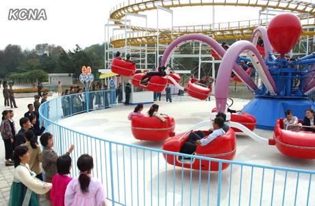 朝鲜两游乐场改建完毕 民众享受游乐设施