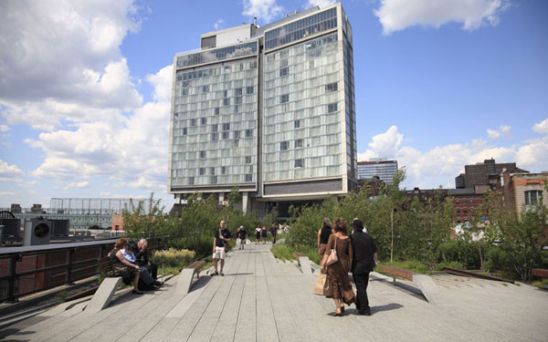 这座灰色外观的酒店坐落于纽约的肉类加工区,尽管酒店中设有屋顶酒吧、溜冰场、免费无线网络和自行车等设施服务,但酒店阴沉的外观还是给人以压迫感。