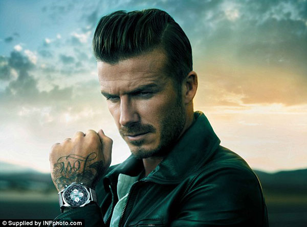 据英国《每日邮报》11月14日报道,球星贝克汉姆日前为瑞士百年手表品牌百年灵(Breitling)拍摄了一组代言写真,刮起了一股复古风,既怀旧又时尚。在其中一张照片中,37岁的贝克汉姆穿着黑色皮夹克,站在美国加州一个机场的一架私人飞机前,嘴角微撅,手背旅行包,露出手腕上的名表,酷劲十足,十分帅气。