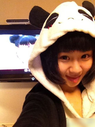 杨紫直接就穿上了熊猫头外套。