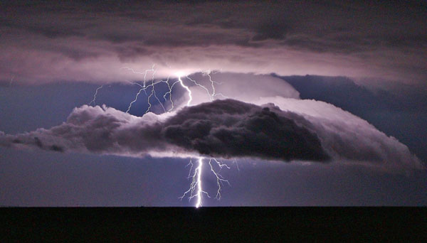 非专业组,夜间摄影,二等奖获得者Jerry Cotten ,获奖作品'West Texas Lightning'。