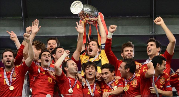今年欧洲杯,西班牙在进军决赛的道路上饱受抨击。但就在决赛上,西班牙人用华丽的表现告诉诋毁他们的人,为什么这个时代是属于西班牙的。文森特•德尔博斯克的球队用创纪录的四球优势横扫意大利,卫冕了“欧洲之王”的荣誉。不仅如此,他们还成为亚欧大陆上第一支连续赢得三项主要杯赛冠军的国家队。