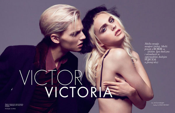 妖男超模雌雄同体 一人分饰两角拍时尚大片
