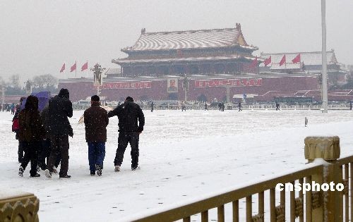 2月18日,白雪覆盖的北京天安门广场景色迷人。从2月17日开始,北京迎来今年首次全市降雪过程,也是入冬以来降雪量最大的一次。上周还暖意融融的京城气温骤降,达到零下1摄氏度。中新社发 毛建军 摄