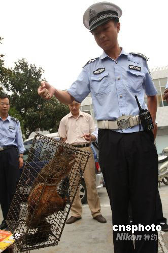 2008年9月9日,湖北省襄樊市交警四大队院内,一笼红白鼯鼠正被装上面包车,准备送往该市森林公安分局后放生。当日8时10分,交警四大队民警李胜丰在襄城二桥头对一辆保康牌照的面包车进行例行检查时,发现车上装有大量野生动物。经查,有红白鼯鼠32只(属湖北省级保护动物)、一袋野生蛇、4只麂子、2只猪獾。目前,襄樊市森林公安分局已开始调查此案。中新社发 文铭 摄