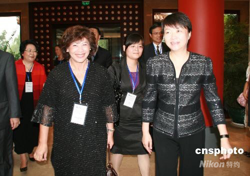 图为联合国副秘书长诺琳·海泽(左)在扬州市长王燕文(右)的陪同下出席会议,并参加当晚扬州举办的第二届世界运河名城博览会开幕式。