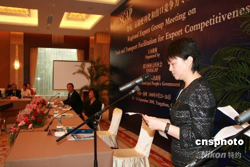 9月25日上午,由联合国亚洲及太平洋经济社会委员会(ESCAP)和扬州市人民政府共同主办的“促进贸易及交通便利与提高出口竞争力”国际会议在扬州市举行。来自东亚、东南亚和南亚等政府高级官员、商界领袖、学者,以及来自于联合国亚太经合会、国际海关组织、亚洲开发银行国际和区域机构的代表汇聚古城扬州,探讨如何通过贸易便利化的改革提高出口竞争力。中新社发 崔佳明 摄