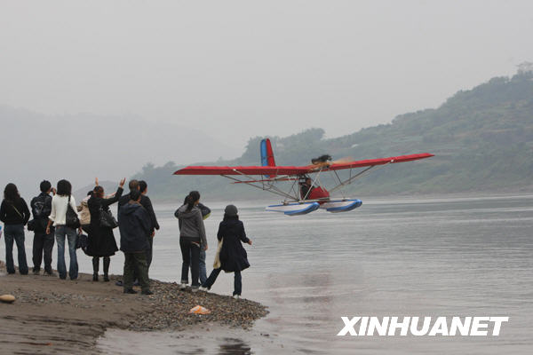 10月25日,重庆市江津区电信局员工彭聪在江津长江水面上驾驶自己制造的飞机成功起飞,并飞上了320米高空。制造这架飞机,彭聪用时5年,耗资10多万元,经过无数次试验才最终成功。 新华社发