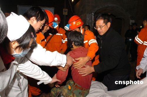 11月24日凌晨4时56分,经过救援队伍的昼夜奋战,被困井下达80小时之久的4名江西龙南夹湖峇潭钨矿矿工成功获救。经现场医护人员初步检查,4名矿工身体状况良好、情绪稳定。随即,4名获救矿工被迅速转送到县城医院进行身体全面检查。中新社发 朱文标 摄