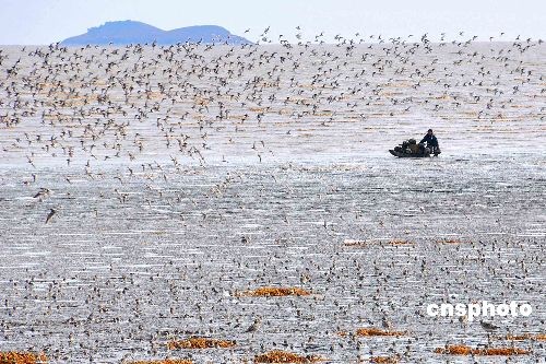 2009年2月17日,江苏赣榆县沿海滩涂数万只海鸟自由翱翔,不时发出鸣叫,成为—道亮丽的风景。近年,赣榆县不断改善滩涂环境,引导沿海渔民呵护自然、善待生物、爱鸟护鸟,吸引了越来越多的海鸟在赣榆滩涂嬉戏玩耍。据当地渔民介绍,这些海鸟大部分是海鸥、海燕、鱼鹰等,以前在远海中常看到这番景象,在近海滩涂看到这么多各种各样的海鸟尚属少见。中新社发 司伟 摄