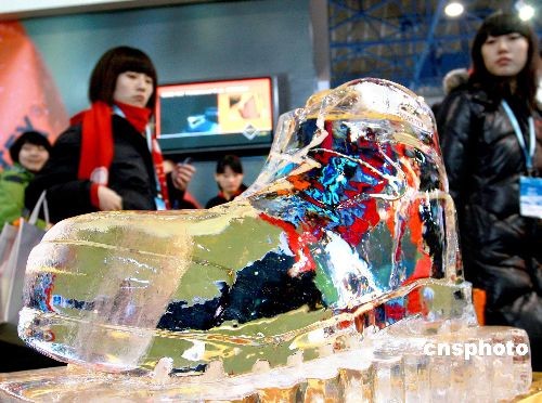 2月19日,Ispo China 2009暨第5届亚洲国际品牌体育用品及运动时尚博览会在北京国展开幕,来自欧美各国及中国本土共300余运动品牌集中展示最新的装备设计和趋势导向,并寻求更多渠道发展和品牌合作机会,展品范围涵盖雪类运动、户外运动、运动时尚、功能性面辅料等。本次展会的规模达到25000平方米,是专门为体育用品企业提供服务的展示平台。另外,由于近期“大冬会”的举行,引发中国体育用品市场的消费热潮。中新社发 郑雄增 摄