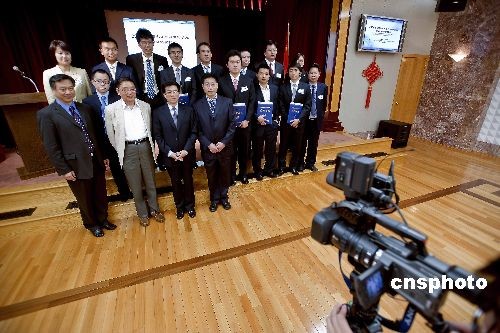 当地时间五月十二日,中国驻旧金山总领事高占声为二零零八年度“国家优秀自费留学生奖学金”获奖人员发奖,十三名自费博士生接受了获奖证书和五千美元奖学金。中新社发 陈钢 摄