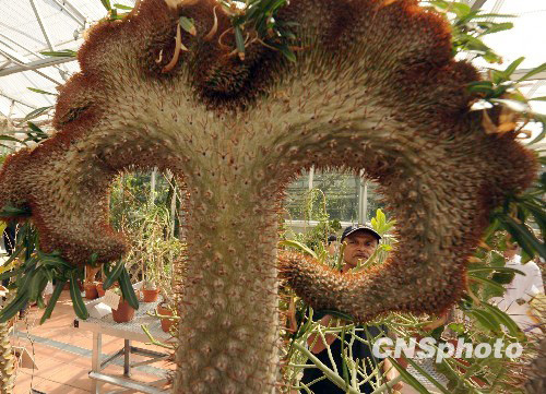美国加州大学伯克利分校植物园里收集着世界各地的沙漠热带植物,今年八月气候宜人,一种仙人掌长得酷似东方古代如意形状,很受观众喜爱。中新社发 贾国荣 摄