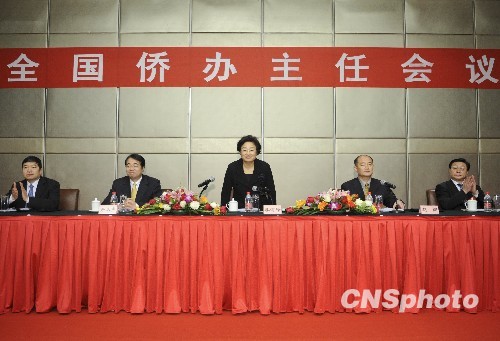 1月11日,全国侨办主任会议在北京召开,国侨办主任李海峰、副主任赵阳、许又声、马儒沛、任启亮出席会议。中新社发 廖攀 摄