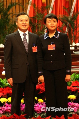 1月22日下午,为期4天的扬州市第六届人民代表大会第三次会议闭幕,会议选举产生出新一任扬州市人大常委会主任和扬州市长。图为新当选的扬州市人大常委会主任王燕文和扬州市长谢正义合影。中新社发 崔佳明 摄