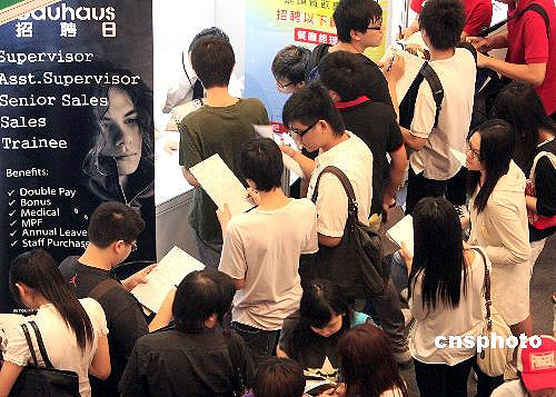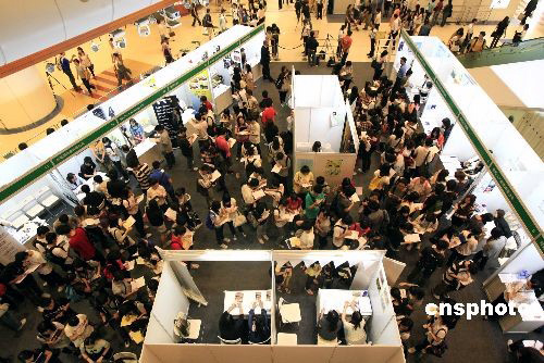 5月25日至27日,香港劳工处在香港青衣城举办一连三日的招聘会。参与这次招聘的来自零售、餐饮及保安等行业。图为招聘会现场。中新社发 张勤 摄