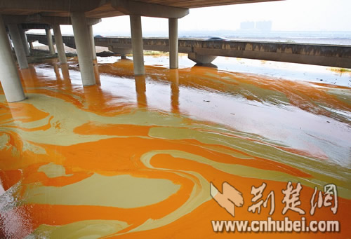 近日,湖北武昌野芷湖大桥引桥处,珞狮南路上三环线的高架桥下,彩色的泥浆“画”出一幅美丽的画卷。据了解,这些泥浆来自附近的工地,是从近百米深的地下抽出,经汽车运到此,泥浆越积越多,并开始流动便形成如此美妙的奇观。朱熙勇 摄
