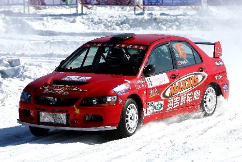 来自中国最南边的广东车手徐伟瑜在近日举行的2010年中国汽车拉力锦标赛漠河站黑龙江冰面上成功挑战了漠河极地的冰雪道路,为玛吉斯轮胎华南虎车队写下了新的传奇,取得国内N组第五的好成绩。中新社发 赵振清 摄