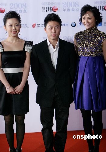 2009年2月19日,由百度主办、中国新闻网等媒体协办的“百度娱乐沸点2008年度盘点”在“水立方”盛大举行。奥运体操冠军李小鹏、“跳水皇后”高敏,“九球天后”潘晓婷一起走上红毯出席颁奖典礼。中新社发 袁方 摄