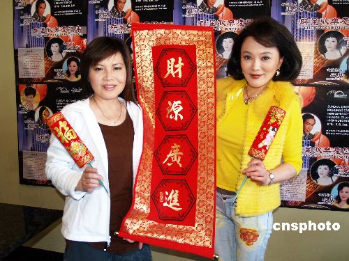 1月14日,台湾“金钟影后”张琴、“贺岁歌后”龙飘飘赴美国洛杉矶参加“群星欢乐庆鼠年”演唱会,汇合台湾歌星张琪、李龙基同台,与华人华侨共度农历中国农历新年。中新社发 卢威 摄