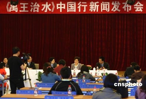 4月10日,大型交响清唱剧《禹王治水》发布会在北京召开。由国务院侨务办公室和美国旧金山“游子吟”合唱团、美国北加州中国和平统一促进会联合主办的大型交响清唱剧《禹王治水》将于2009年4月18日在北京国家大剧院举行。《禹王治水》由著名作曲家鲍元恺作曲,旅美华人过客作词。在北京的演出阵容将包括180人的合唱队伍和70人的交响乐团。“游子吟”合唱团是美国旧金山湾区华人华侨组成的民间合唱团,云集了一批较有影响的旅美词曲作家和歌唱家。中新社发 杜洋 摄