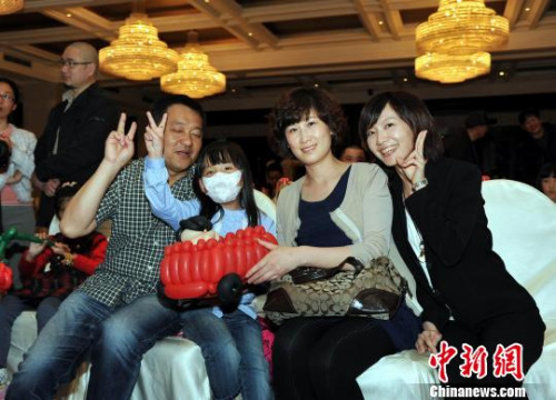 台湾长庚纪念医院大陆病友联谊茶会近日在此间举行。图为大陆病友一家人与台湾长庚纪念医院人员开心合影。 陈立宇 摄