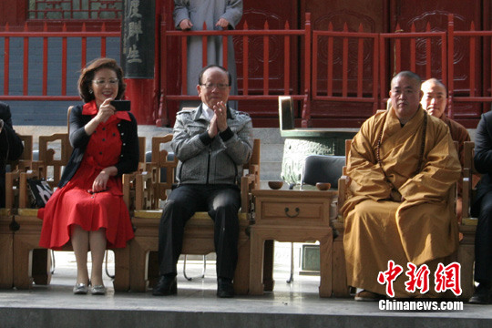 4月13日,河南登封,受邀参加黄帝故里拜祖大典的中国国民党副主席蒋孝严携夫人参观嵩山少林寺。中新网发 郭龙 摄