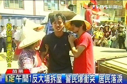 原本县长刘政鸿,限期居民在7月5日前自行拆除,台当局“行政院”和马英九办公室介入后,临时喊停,不过苗栗县早就申请了两星期的拆除占路权,上午还是用三角椎封路,支持者心中气恼,致使爆发冲突。而大埔拆迁事件,3年前已导致一人想不开自杀。