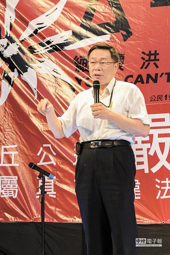 资料图:7月20日,柯文哲出席哀悼洪仲丘的烛光晚会。 图片来源:台湾《中时电子报》
