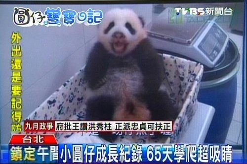 保育员替圆仔量体温的时候,它还不断挥动四肢想挣扎,看起来很有力,而现在慢慢的开始学爬,偶尔趴在地上也会试着撑起来。台北市动物园研究员说:“圆仔它的重量是超过4公斤428克左右,比昨天大概又重了200多克,不过今天看起来是已经喝过奶的重量。”
