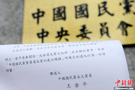 中新网9月11日电 据台湾媒体报道,台当局立法机构负责人王金平今天(11日)上午出席国民党考纪会,向考纪会递交一份声明,并向考记委员说明状况,即离开党中央。