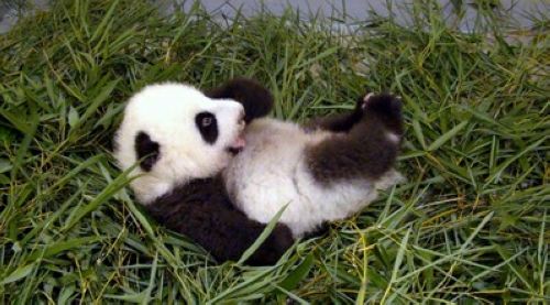 不管是躺在保温箱还是竹叶床上,“圆仔”都不会放过机会,非常热衷于翻身运动。动物园说,“圆仔”现在的翻身成功率不高,再过一段时间,它的肌肉发展越来越好,就可以想翻就翻,不过现在还得靠妈妈“圆圆”。