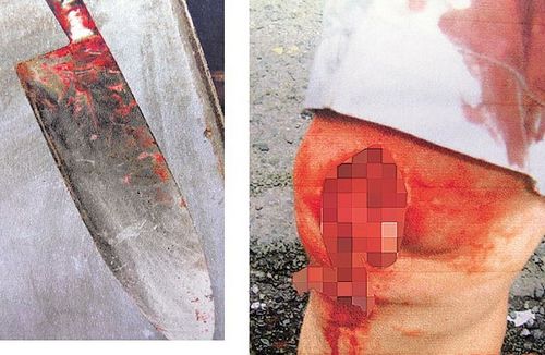 王男被鱼刀(左图)砍伤膝盖(右图)。图片来源:台湾媒体