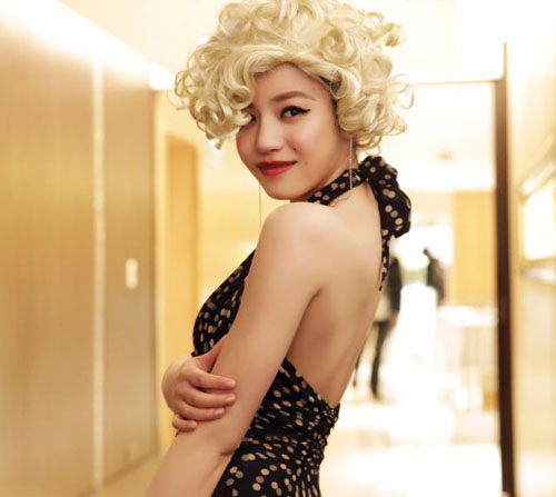 参与互动(0)陈妍希穿露背洋装,扮成玛丽莲梦露(图自台湾今日新闻网)