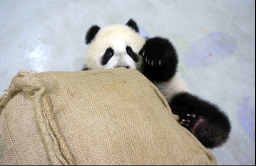 动物园说,“圆仔”的玩具当中,麻布袋包着韵律球的“阿给”是现阶段最任劳任怨的好玩伴,可以接受“圆仔”牙齿和爪子的挑战,和20公斤“圆仔”突然飞扑过来的重力加速度,非常坚固耐操。