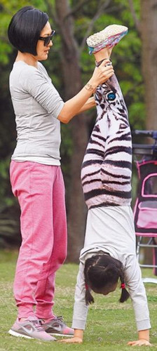 当天小S带女儿到华山园区,她赤脚坐在野餐垫上玩手机,大女儿和二女儿奔跑玩乐,中途司机送来包子和饮料,小S开吃,突然小女儿Alice吵着要吃布丁,小S亲手喂女儿。吃饱后她接着拉筋和大姐跑步,跑15分钟后,她脸不红气不喘坐下,还帮大女儿许俏妞倒立,大女儿筋骨软Q,遗传到妈妈身段,傍晚小S才带女儿回帝宝。