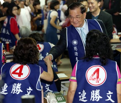 连战18日前往连胜文竞选办公室,慰问志工/“中央社”