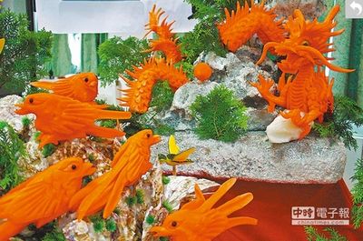 校长陈世埕说,会场内各式料理美味,看得出学生的用心,有学生将以往圣诞节的姜饼屋,打造成台式风味的屋子;精致的蔬果雕作品引人注目,则是业界老师陈枫洲指导学生,将红萝卜、白萝卜与芋头等,雕刻出鸡、龙、鸟等形体。