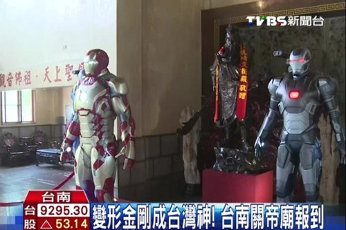 报道说,文衡殿去年花70多万台币买了3尊钢铁侠模型,信徒反应热烈,今年看《变形金刚4》电影上映,干脆再买一尊擎天柱,预计7月中旬还会再买一尊大黄蜂,到时擎天柱和大黄蜂在庙门边对望,要当文衡殿另类门神。