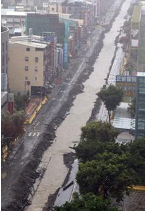 图为气爆路段被淹。(图片来源:台湾《联合报》)