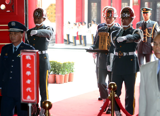 台军方27日迎回缅甸地区阵亡将士英灵,并以总牌位形式正式入祀“忠烈祠”。台湾“中央社”图