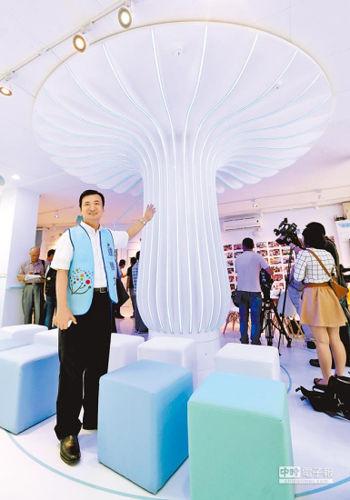 国民党台北市长参选人连胜文竞选总部23日落成,首席发言人杨永明表示,大厅中央以1棵“希望树”作为主视觉,呼应“散播希望的种子”竞选主轴。图:“中时电子报”