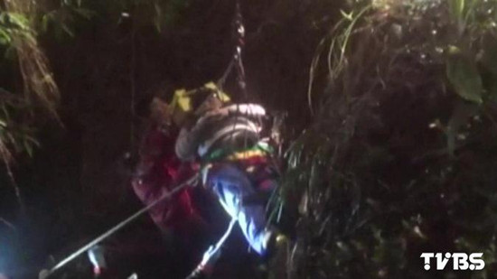 中新网12月30日电 据台湾TVBS新闻台报道,台湾苗栗县一名体重120公斤的男子,因为天雨路滑,骑摩托车过弯时不慎摔车,人跌落6米深驳坎,消防队出动6名人力,尝试将男子抬起来,但困难度太高,最后只好出动吊车。