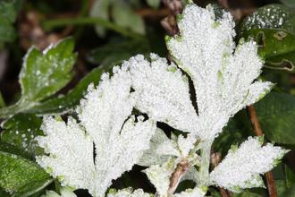 阿里山今天凌晨温度下探零下2度,植物纷纷结霜。图:台湾《联合报》