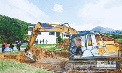 图为刘政池在阳明山建造七七行馆,怪手挖出1个由12个货柜组成、面积约600平方米的地窖。(台湾“中时电子报”资料照片/张铠乙 摄)